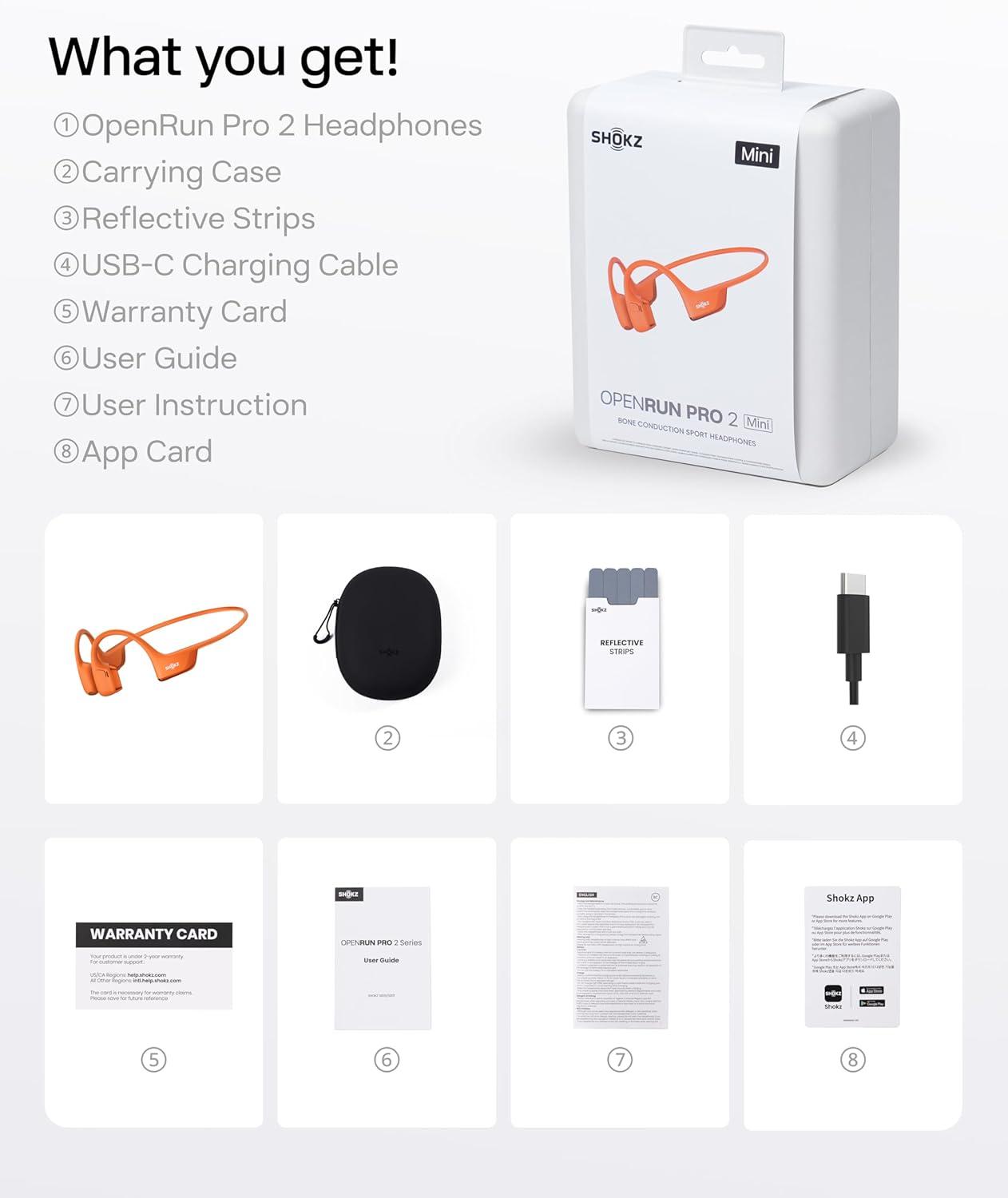 SHOKZ New OpenRun Pro 2-Bone Conduction Headphones,Open-Ear Bluetooth Wireless Sport Earphones for Running,Workouts-Sweat Resistant,Secure Comfortable Fit-Deep Bass,Smart Mic,Reflective Strip(Orange)