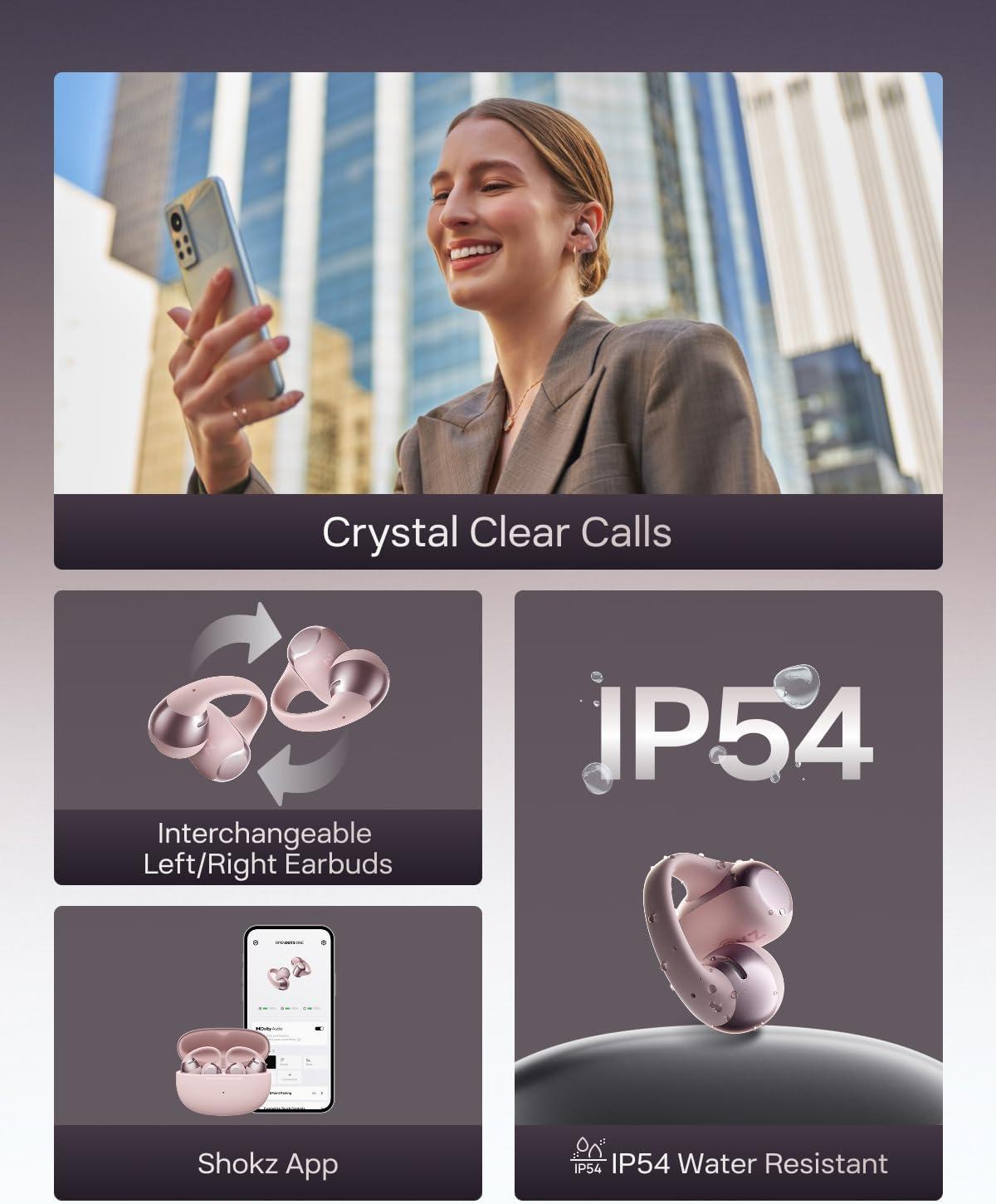 Rich, Open-Ear Audio – Shokz signature open-ear design keeps you connected to the world while you experience the pocket-sized power of OpenDots ONE's premium Dolby Audio and Bassphere Technology.