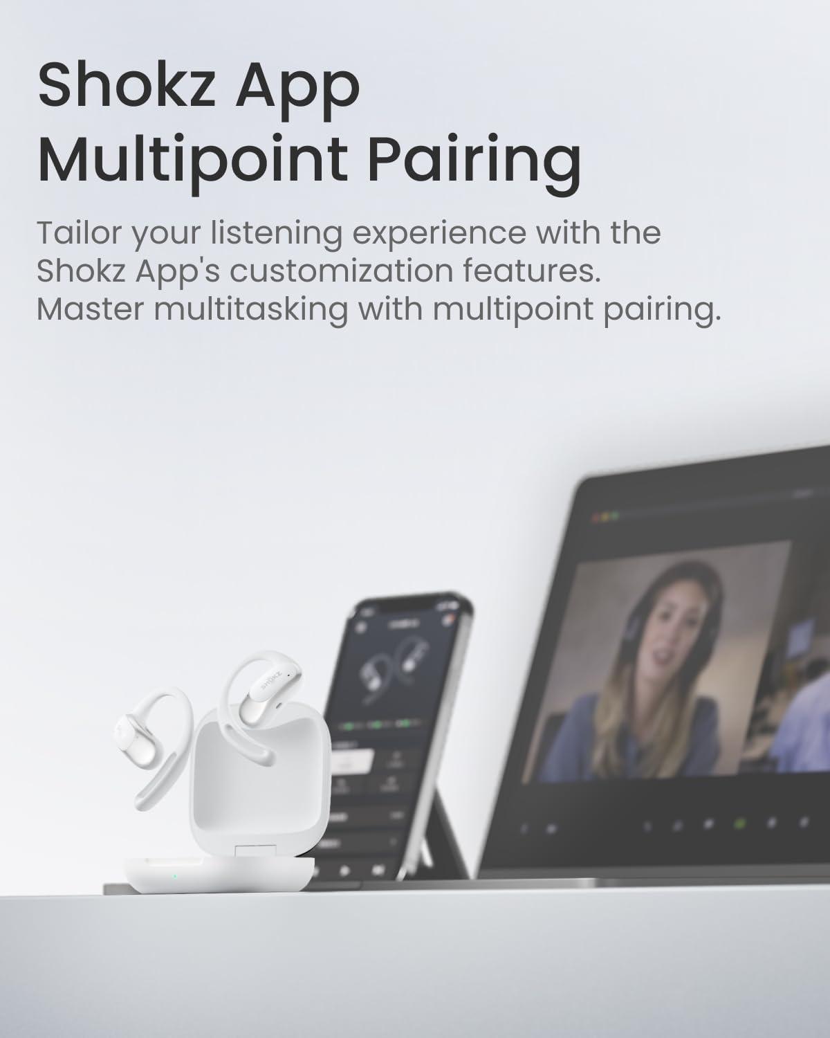 Shokz App – Our app puts the essentials at your fingertips. Tailor your listening experience with easy multipoint pairing, personalized EQ modes, customizable button functions, and real-time power information.
