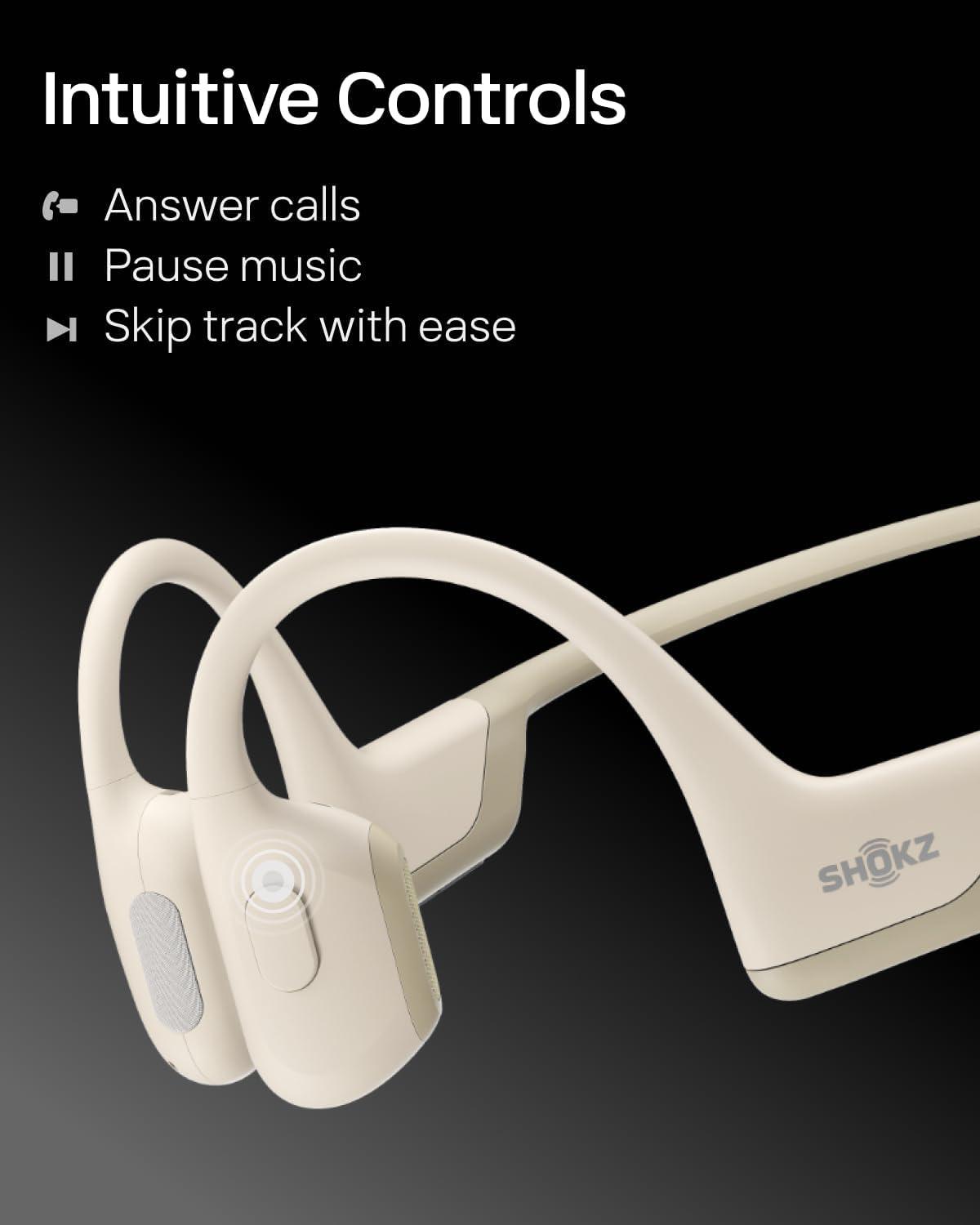 SHOKZ OpenRun Pro-Bone Conduction Headphones, Open-Ear Bluetooth Wireless Sport Headphones for Running and Workout, Sweat Resistant, Long Battery Life, Premium Deep Bass, Mic,with Hair Band, Beige(Beige)